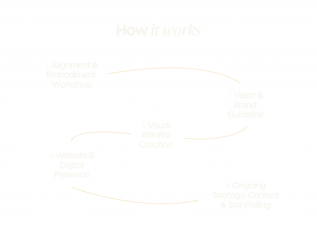 That’s why before colors, logos, or websites, we begin with Vision Branding & Alignment: a process some of our clients describe as “therapy for my soul.” It’s the inner work – clarifying your foundations, values, and why you do what you do – before creating the outer expression.
